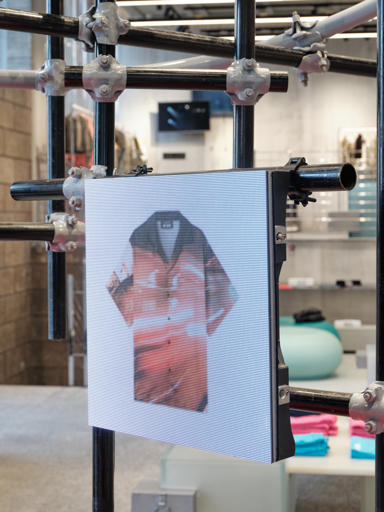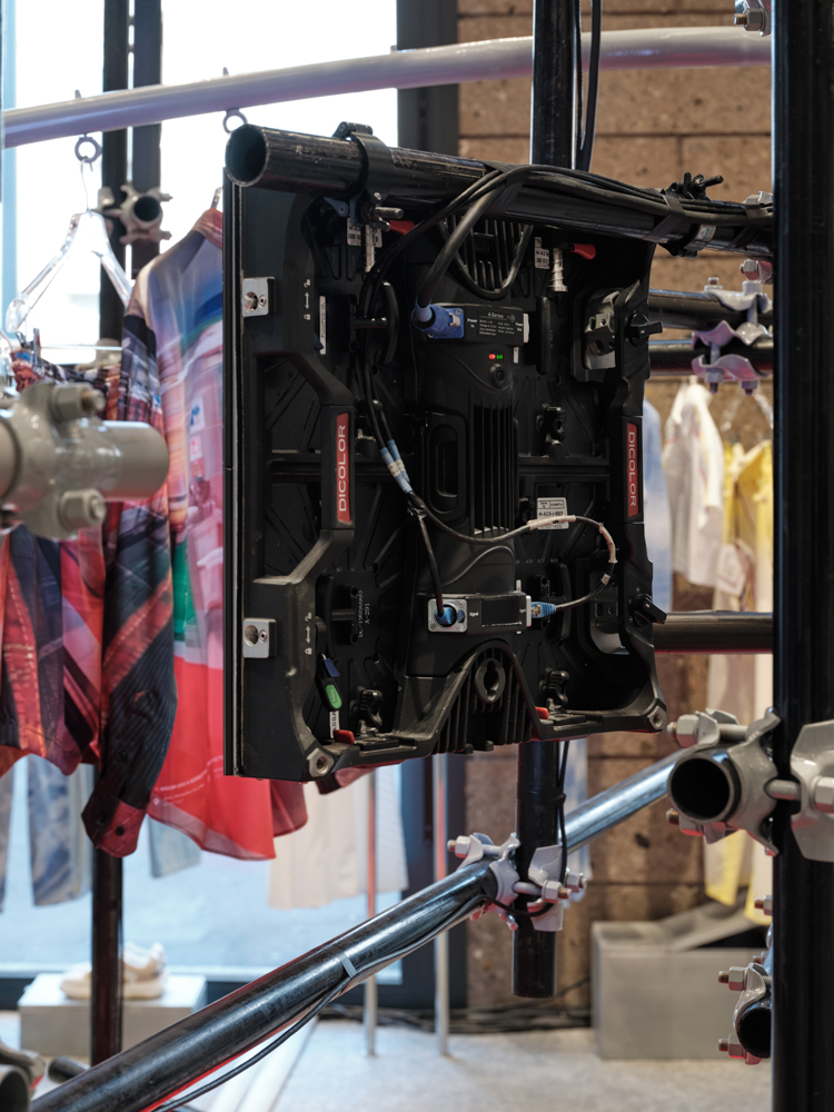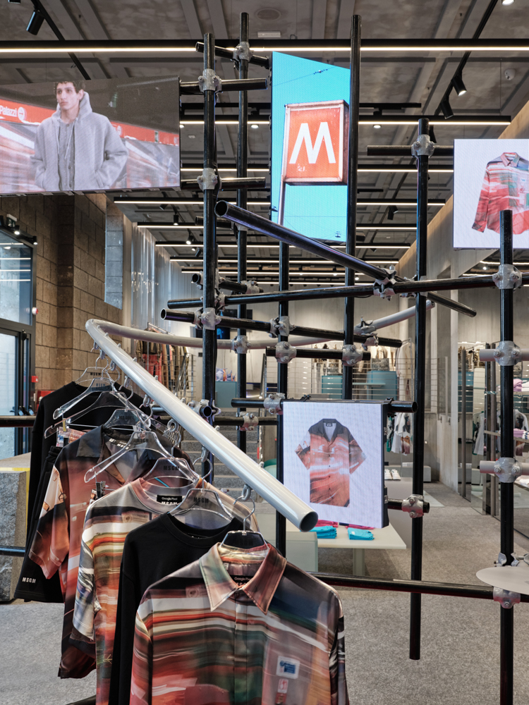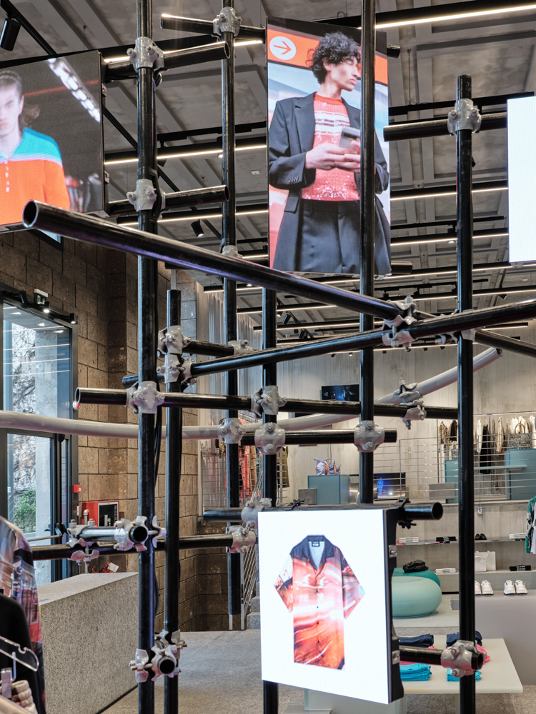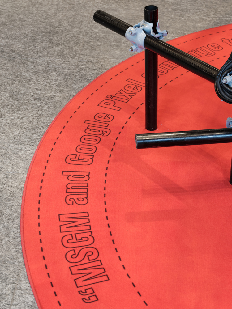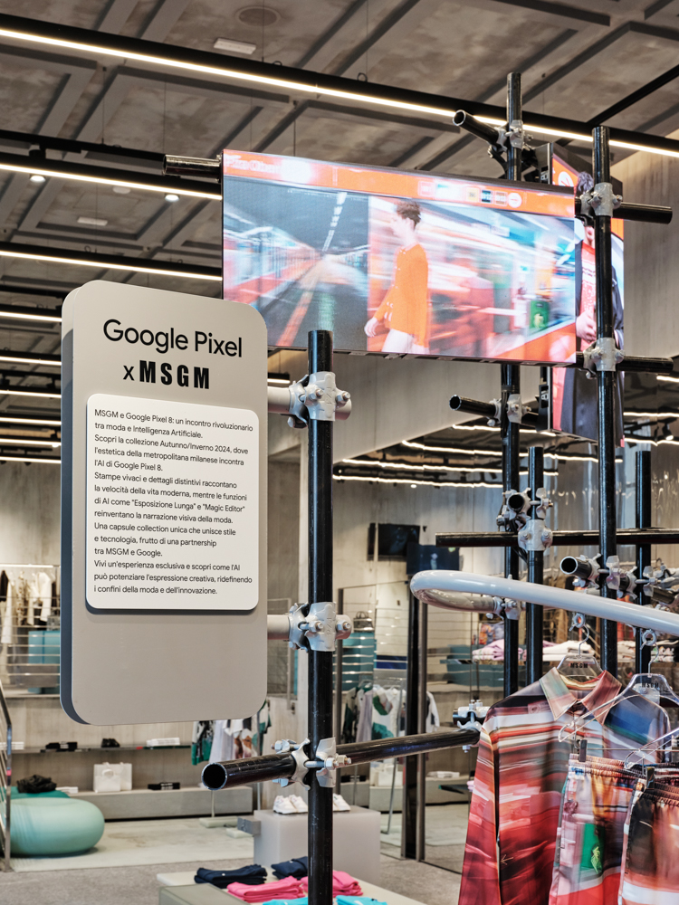Inspired by antennas, from insects to the telephone network’s cell towers, the installation presented the latest collaboration between MSGM and Google Pixels. The installation is the hardware, where the new collection by MSGM, the Google Pixels devices and audio-visual contents are mixed and looped in a circular flow.