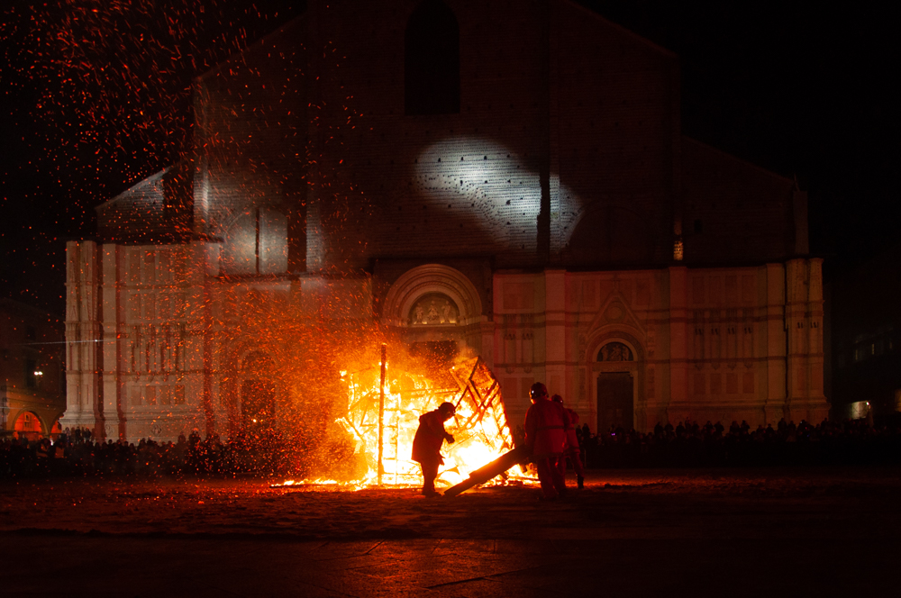 Fire and architecture are somehow extremely connected. From Chicago and the story behind the rise of skyscrapers to the Great Fire of London, flames are an active part of architectural history. Same for the old tradition of Vecchione. As every year since memorable time, in the city of Bologna, the night of New Year’s Eve is marked by the bonfire of Vecchione (the old man) in Piazza Maggiore, a seven-meters tall wooden sculpture symbolizing the past and burned down at the stroke of midnight.