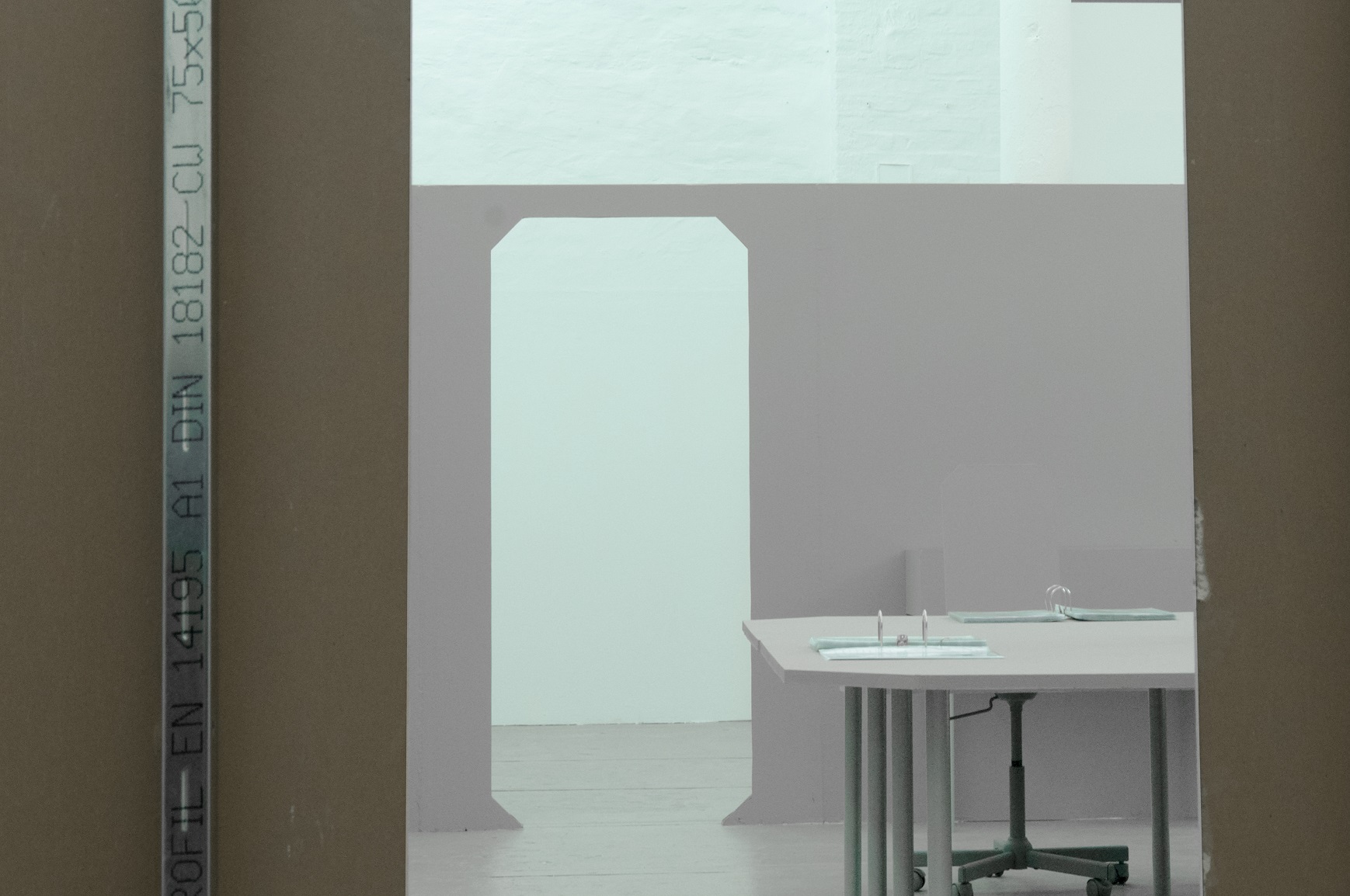 Office for Joint Administrative Intelligence (OJAI) commissioned Parasite 2.0 to design and produce the spatial setting that accompanied the ECII conference and the parallel main exhibition that took place at Grölle pass:projects. “Take them to the waiting room” is a temporary headquarter for a performative practice. The scenography is a flat grey interior inspired by the global standardization of the corporate office environment.