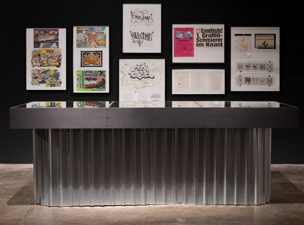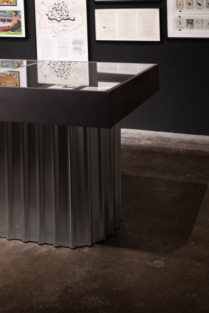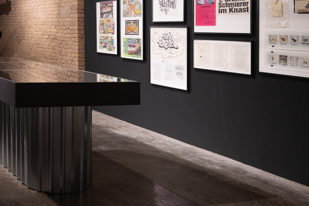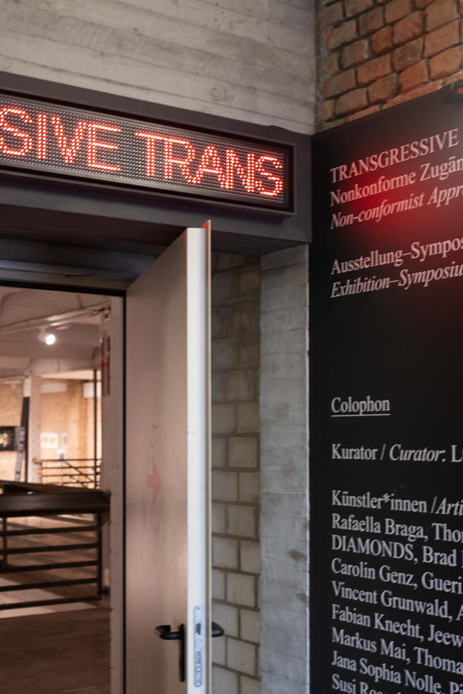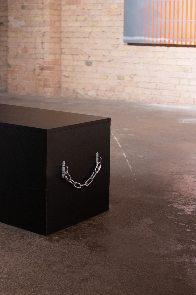 The entire set-up has been reduced to minimum use of resources and outsourcing manufacturing. All the layers of information necessary to navigate the exhibition were concentrated in a minimum series of panels guiding the audience. A series of already existing elements from the storage of the venue have been hacked and transformed avoiding a new production of elements. A set of already existing benches from the venue has been transformed thanks to a plastic film cover and a series of handles using metal chains. This small addition allowed the curatorial team to move them around in order to set up the space for the program of public events. Another example of re-use is a barrier at the entrance partially covered with a welcoming sign. Curated by Lucas Freiress on the occasion of Berlin Art Week, the exhibition collects 48 artists from different backgrounds within a common self-determined and subversive approach to urban space.