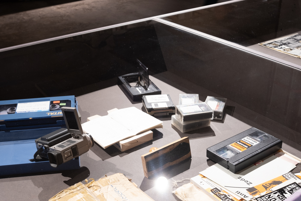 The exhibition design welcomes the spectator in a three floors exhibition with a series of elements that freely combine urban elements and information related to the exhibition. Barriers, metal plates, rocks, and chains build a system of useful objects to link all the various practices in the exhibition together.