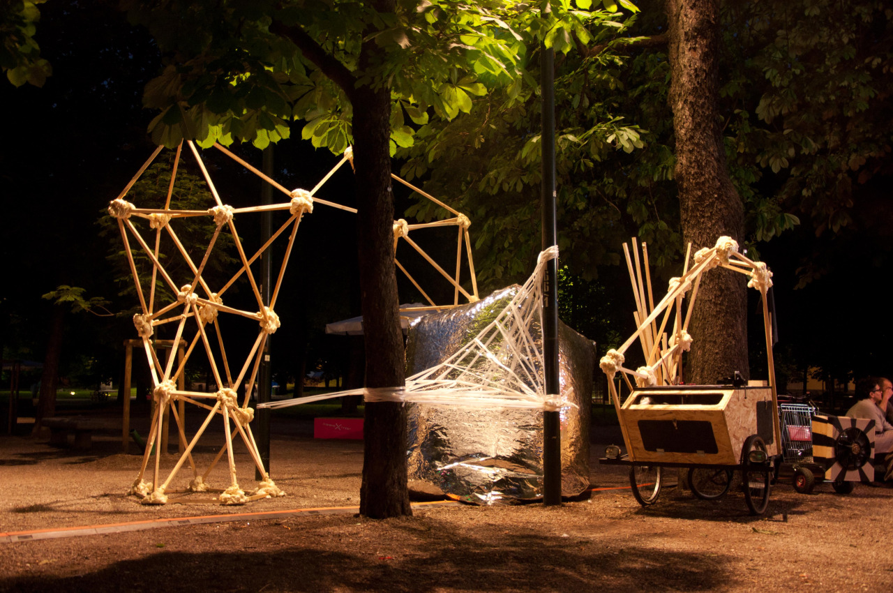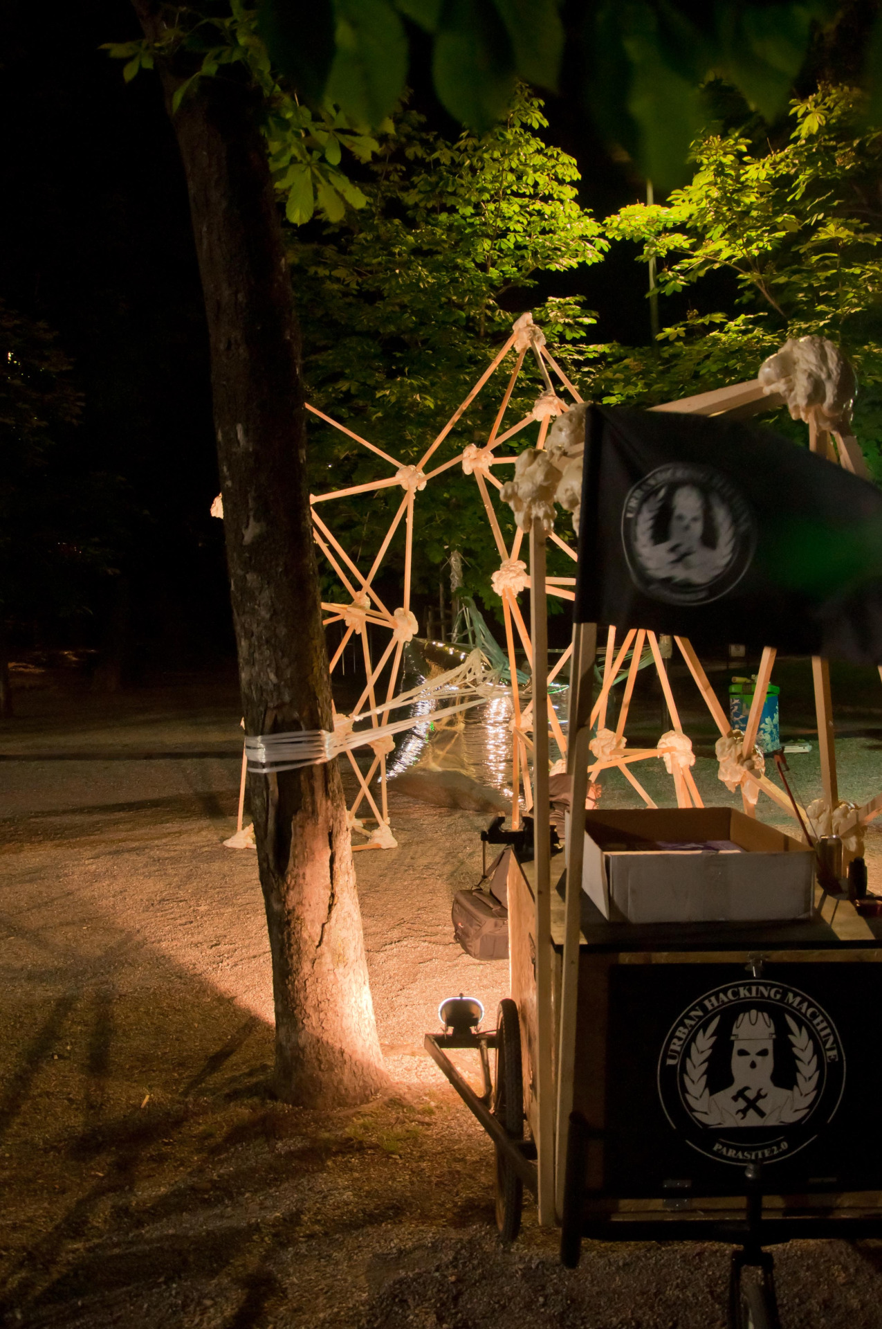 The city with its systems of bureaucracy and planning demonstrated to be too much strict and close to indulge and follow the continuous and fast changes which characterise the era we live in. The real estate speculation, in Italy, appears as the main character in determine the shape of the cities. It buys, in the form of planning fees, the acceptance of the public administrations, no more able to sustain economically the urban transformation. Milan, pushed by the Expo 2015 fever, progressively sold the city to the speculators which in the last years deeply defaced some urban spheres. The municipality doesn’t oppose any resistance to the commercialization of the city, fallen silent by the tasty planning fees. In the urban areas under transformation, for instance City Life, the failure of the new urban planning methods and of the globalization, which exports branded skyscrapers as if they were junk food, is extremely visible and tangible. The economic crisis and the low sales rate of luxury apartments denied the construction of two skyscrapers, designed by Libeskind and Hadid. These facts suggest us to work with new models and for guidance of the urban transformation, no more for profit. They have to restart considering every citizen. The proliferation of free and open movements for the popular emancipation with the aim of organizing new systems, disconnected from the ones we already know, shows the will of taking our world back to a human dimension. The maker movement and the open source culture low the standards and make everything more suitable for all the users, preparing the ground for a new archaic world, for a Primitive Future where the man won’t be anymore passive to the structures which surround him. The project fights the oppressive and perverse urban planning, in order to bring back to the hands of the citizens the city and its project, with a popular, ignorant and bottom-up knowledge. The Urban Hacking Machine is a device dispensing techniques and tools for a new parasite urbanism. A machine to hack the metropolis and prepare the man for the Primitive Future and its new architecture, with poor materials and techniques for all.