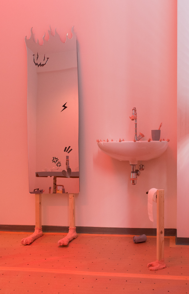 Architecture Parlante concerns an artifact’s potential to tell stories and to envision new paths for collective living. Its title “speaking architecture” derives from a term coined by Claude Nicolas Ledoux to describe structures that explain their own function or identity. The project includes a series of objects and possible architectures inspired by what we defined as an “Architecture Novel” about a fictive group of individuals enmeshed in a conspiracy to take over the main institution controlling their city. If this architecture novel is based on an extreme connection between narration and his surroundings of building and object, the idea behind the plot is connected to the JVE Academie routine. While living the life of the institution, we’ve daydreamed about a group of participants secretly conspiring against it, behind the silent, quiet and polite atmosphere, from the shared kitchen table or the smoking area in the garden to the narrow corridors and the studio-caves. The protagonists of the story are suspended in the act of organizing themself, in a sort of buffer zone without any exit route, in the eternal act of looking for a common view in which the final aim seems impossible to reach.