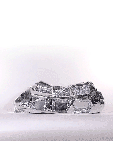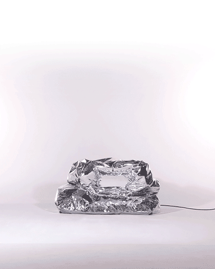 Lapietra is a special installation created for and developed with the fashion brand SUNNEI. The inflatable fixture is an itinerant structure thought and manufactured with the aim to create a full-on experience from start to end. The mirrored PVC prop features monolithic edges and small recesses caved to fit SUNNEI’s latest it-bags: Labauletto and Lacubetto. The self-standing system, engineered to simplify the installation process as much as possible, is triggered by plugging the structure to the wall. Once powered, the fixture inflates on its own without the need for human help. Light and packable, Lapietra puts a spin on circularity going on an international retail tour.