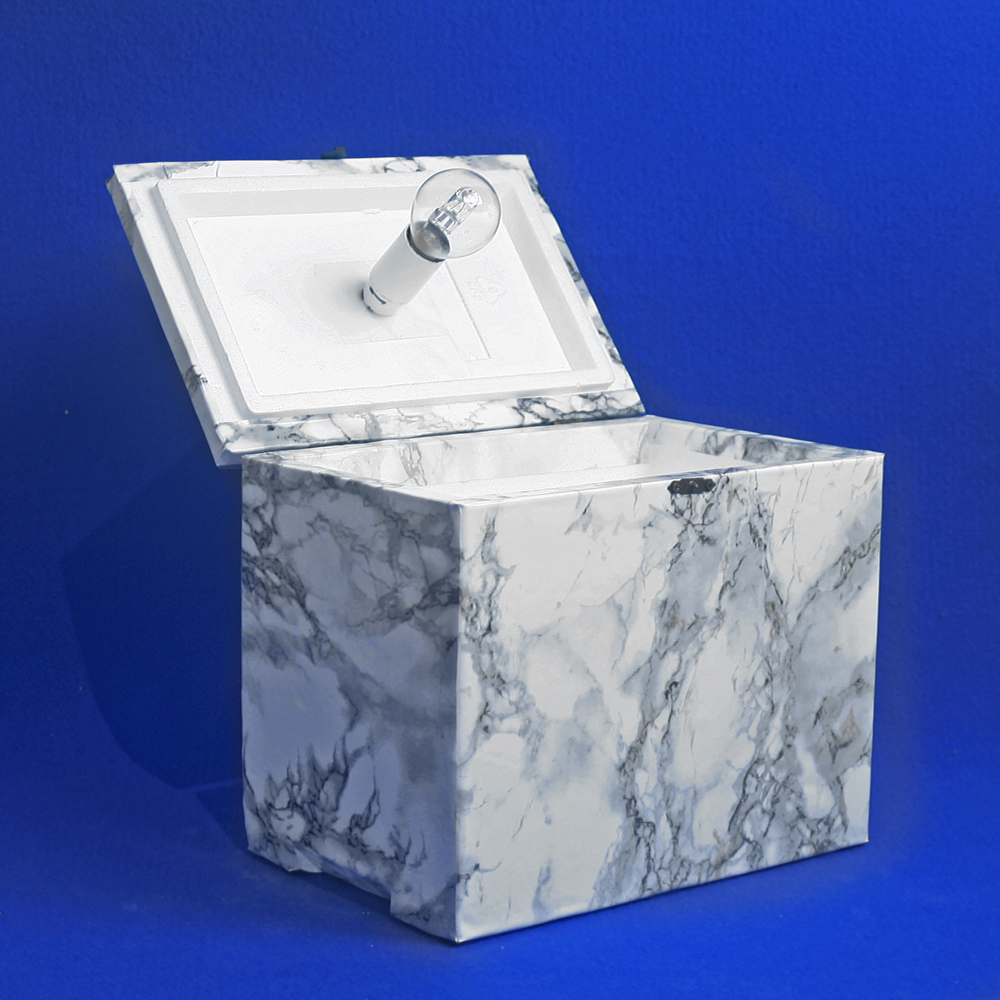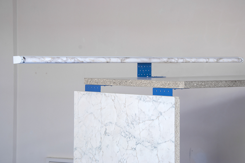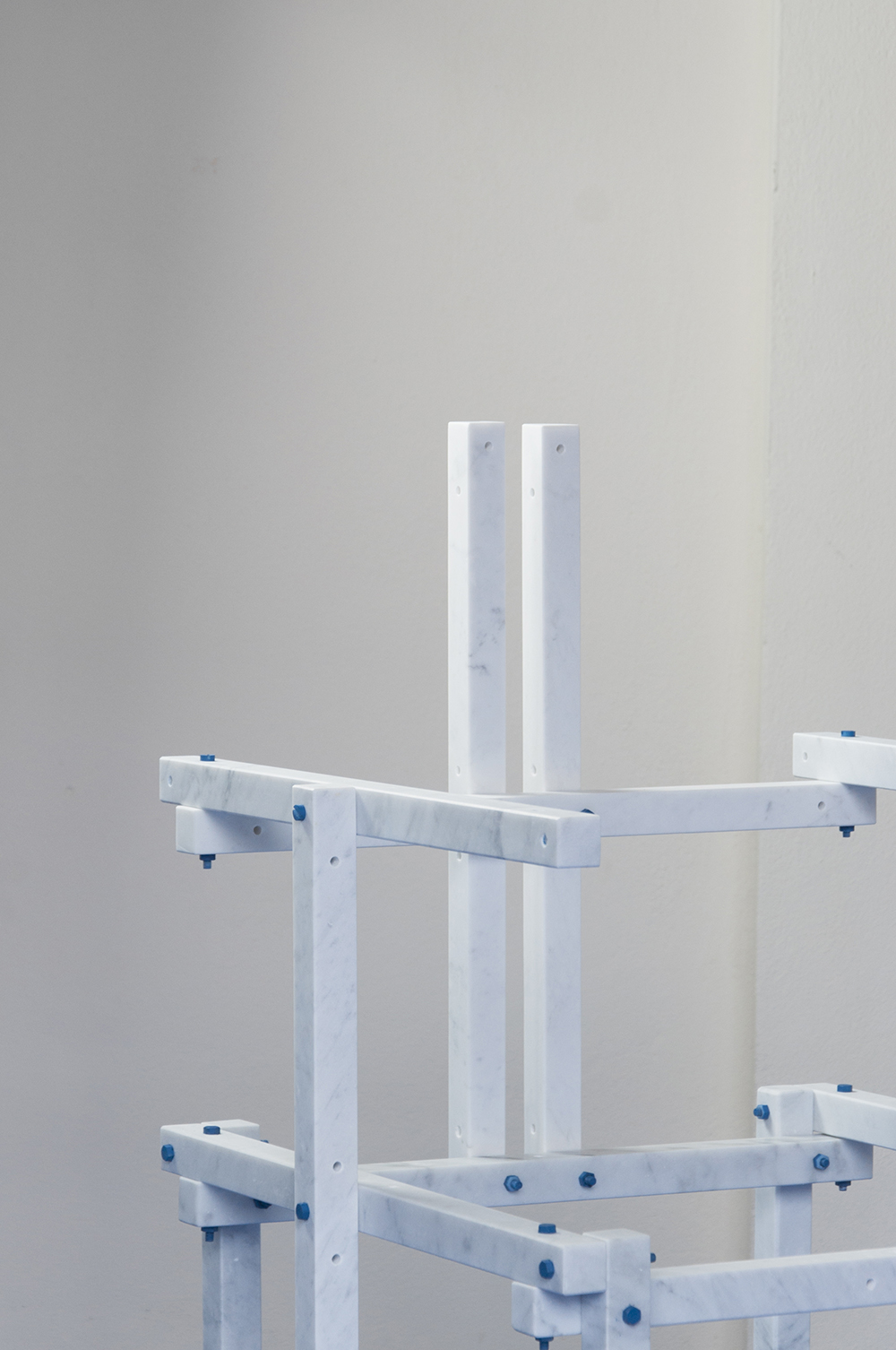 The project tries to rebuild an environment inspired by the laboratories and ateliers of Carrara where marble is transformed since the origins of this community. The main focus is the visible tension between tradition and propensity for the future. In a sort of possible future laboratory, marble mixes with plastic materials entirely made by man and with all those typologies of materials so-called “marble-like”. The exhibition transformed into a processual performance during the week before the opening. In those days space became a laboratory in which all the artifacts were produced. Furthermore, a workshop invited the participants to manipulate, work and interact with the elements of the exhibition, that is the laboratory.