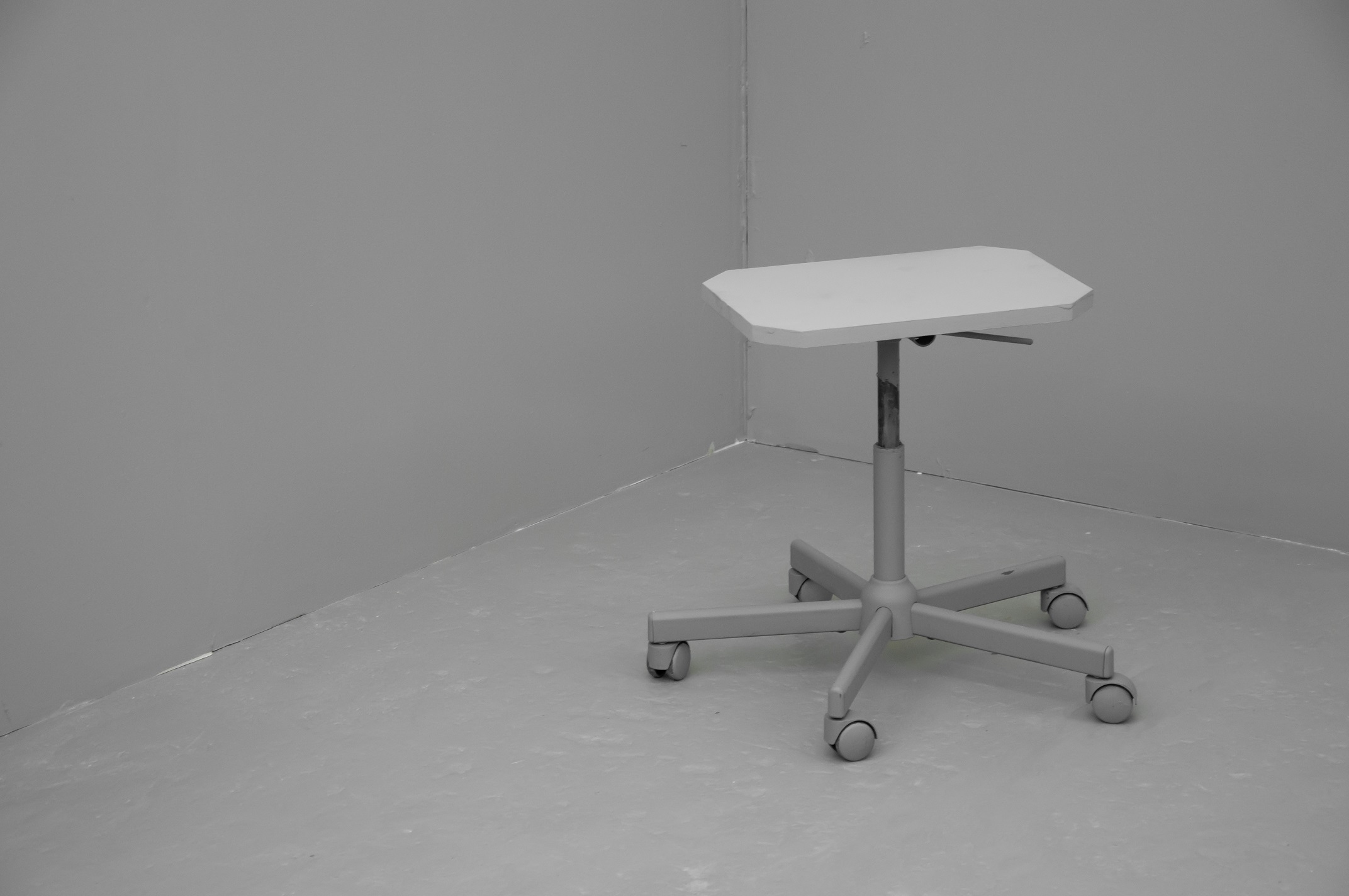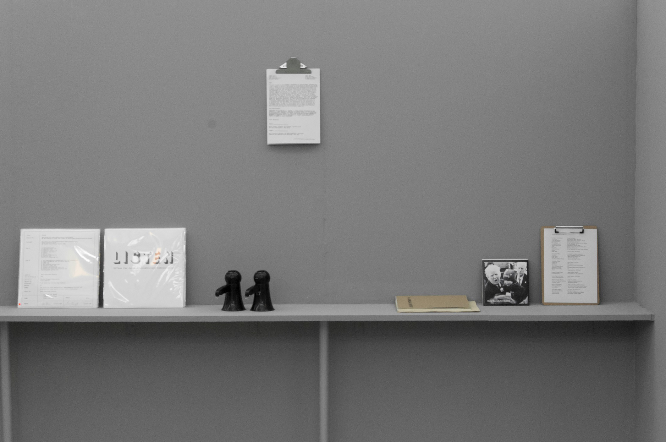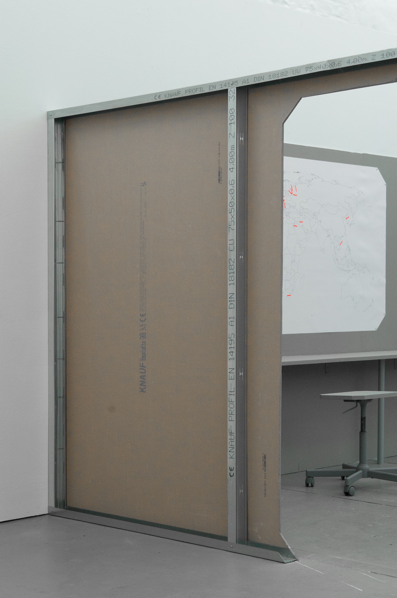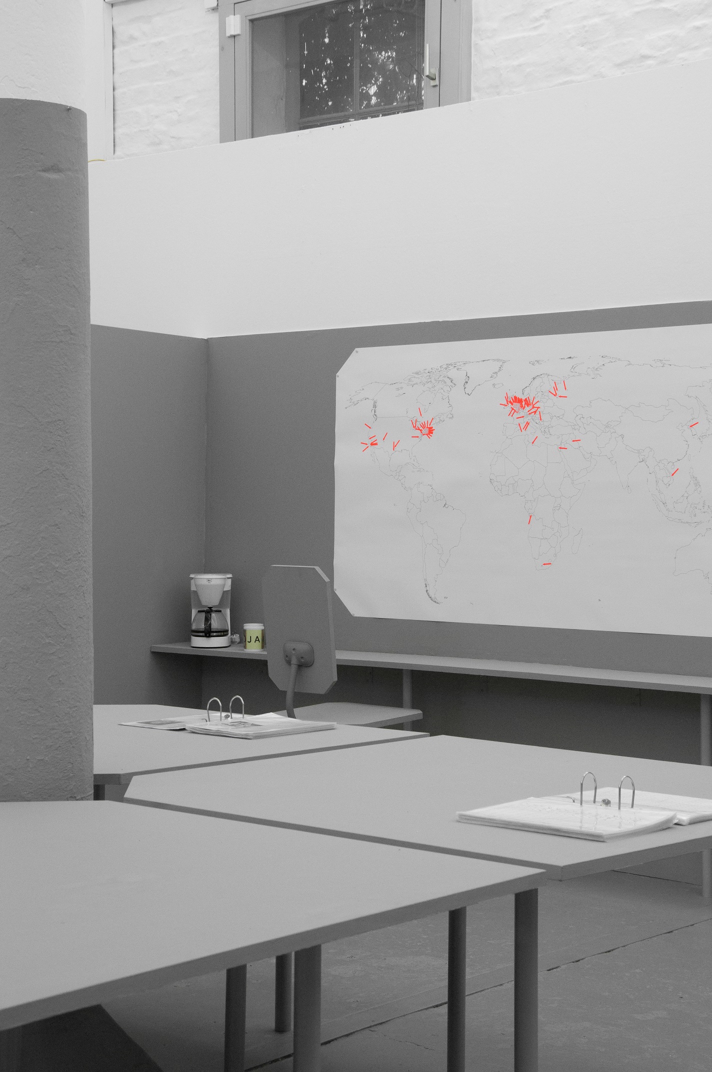 Office for Joint Administrative Intelligence (OJAI) commissioned Parasite 2.0 to design and produce the spatial setting that accompanied the ECII conference and the parallel main exhibition that took place at Grölle pass:projects. “Take them to the waiting room” is a temporary headquarter for a performative practice. The scenography is a flat grey interior inspired by the global standardization of the corporate office environment.