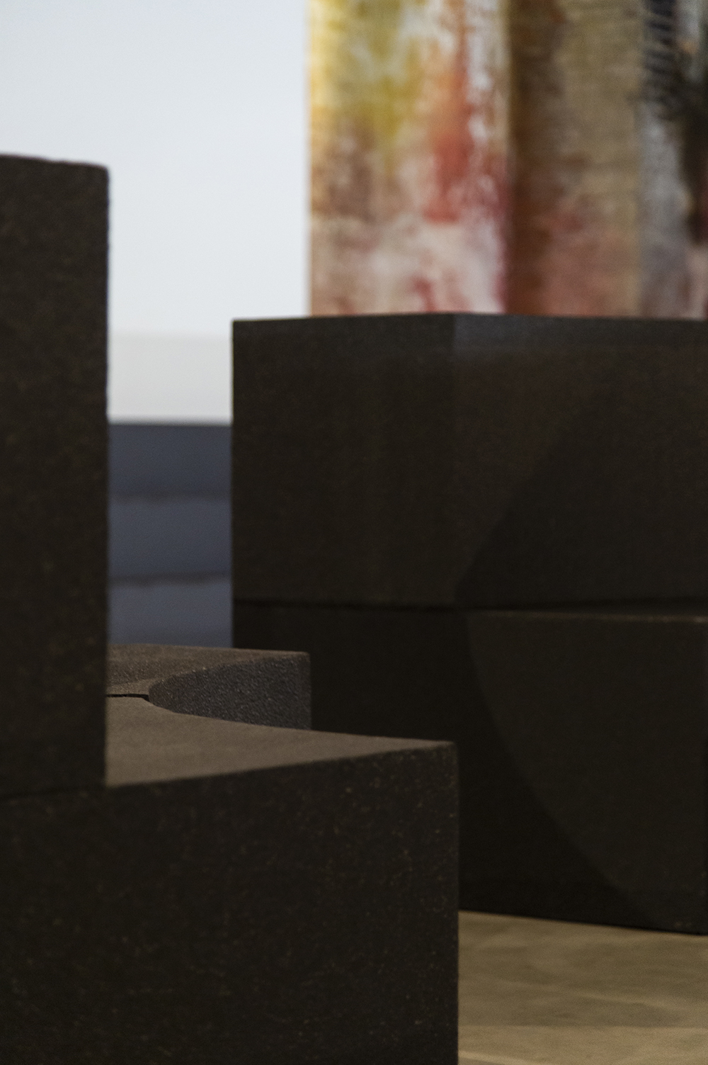 The display designed for the exhibition “Un giorno tutto questo…5 domande sul futuro che ci aspetta” in occasion of the Salone Internazionale del libro di Torino occupies the spaces of the Duomo at OGR (Officine Grandi Riparazioni), and it grows in length for the entire room. Starting from the plan of the room, the projects divide it into 3 corridors, three autonomous areas that remind typical shapes and directions in architecture. All the elements are made of CNC cut EPS (Expanded Polystyrene) blocks, easy to build, move and reuse. Each area exhibits a different kind of material and some pre-spaced information on the walls of the Duomo guided the visitors. The neutral color of the EPS helped to collect the different and colorful materials. Some led neon lights marked the EPS block, thus highlighting them in the darkness of the room.